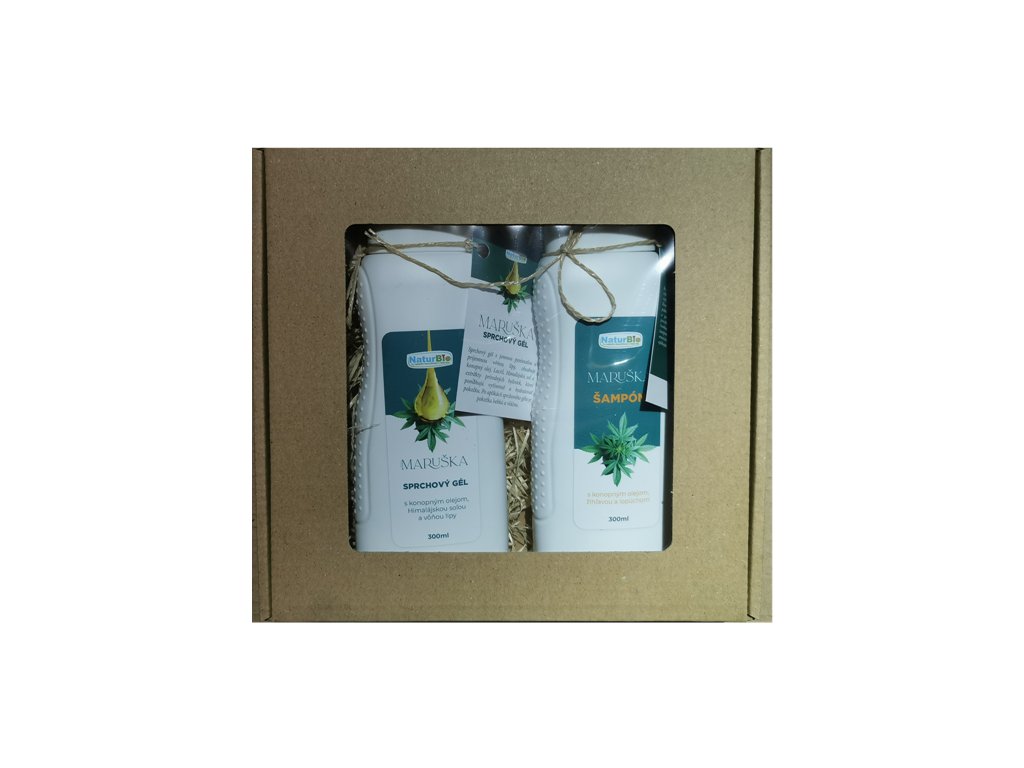 Šampón so žihľavou, lopúchom a konopným olejom (300 ml) + Maruška sprchový gél s konopným olejom, himalájskou soľou a vôňou lipy (300 ml)